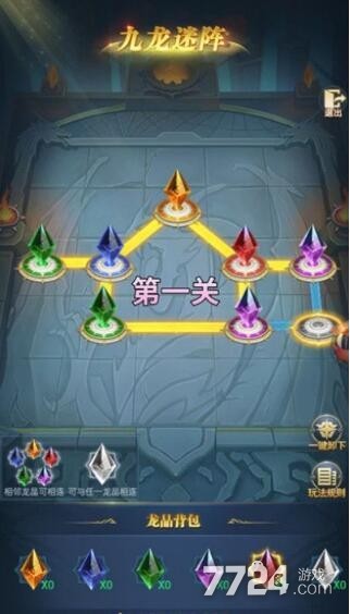 这个副本总共的有三个关卡,实际上要比其他迷宫要简单,因为不用花费时间去打怪闯关,我们只要找到正确的连线规则就可以了,在活动界面也有提示,需要将龙晶放到正确的位置上就可以了,具体的通关方法,大家可以直接参考下面通关线路图就可以了!